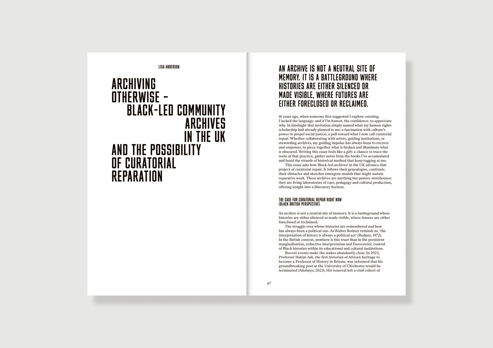 Taking flight from perspectives on translation, solidarity and power, Curating & Repair approaches mediation both as contested terrain and generative possibility. It discusses the importance of challenging normative power relations in artistic collaboration, alongside the difficulties of sustaining creative work against the undertow of multiplying global crises. By aligning the curatorial with the dialogical, it calls attention to the serious, collective work that we as artists, mediators and publics have at our hands.