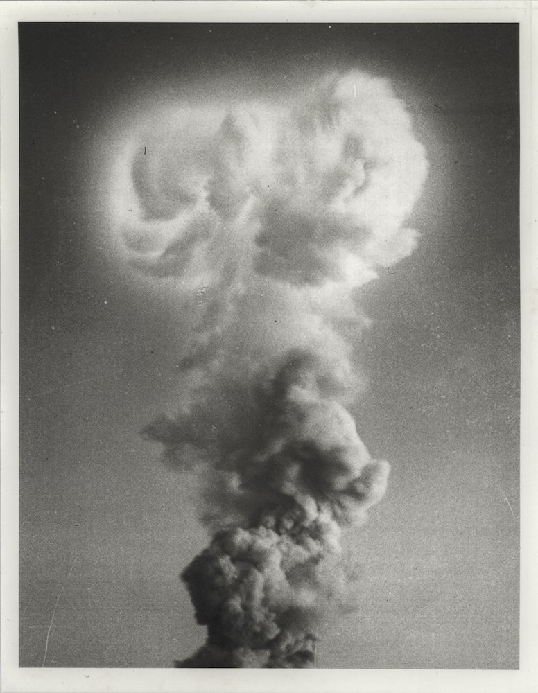 On the other hand, when I’m using raw materials that are directly connected to the themes I’m exploring (e.g., archival photographs that document a specific nuclear weapons test), I’m also deliberately removing the context, so that their meaning isn’t bound up in a single event. And I think that lack of context makes the experience of my images more confrontational and more immediate.